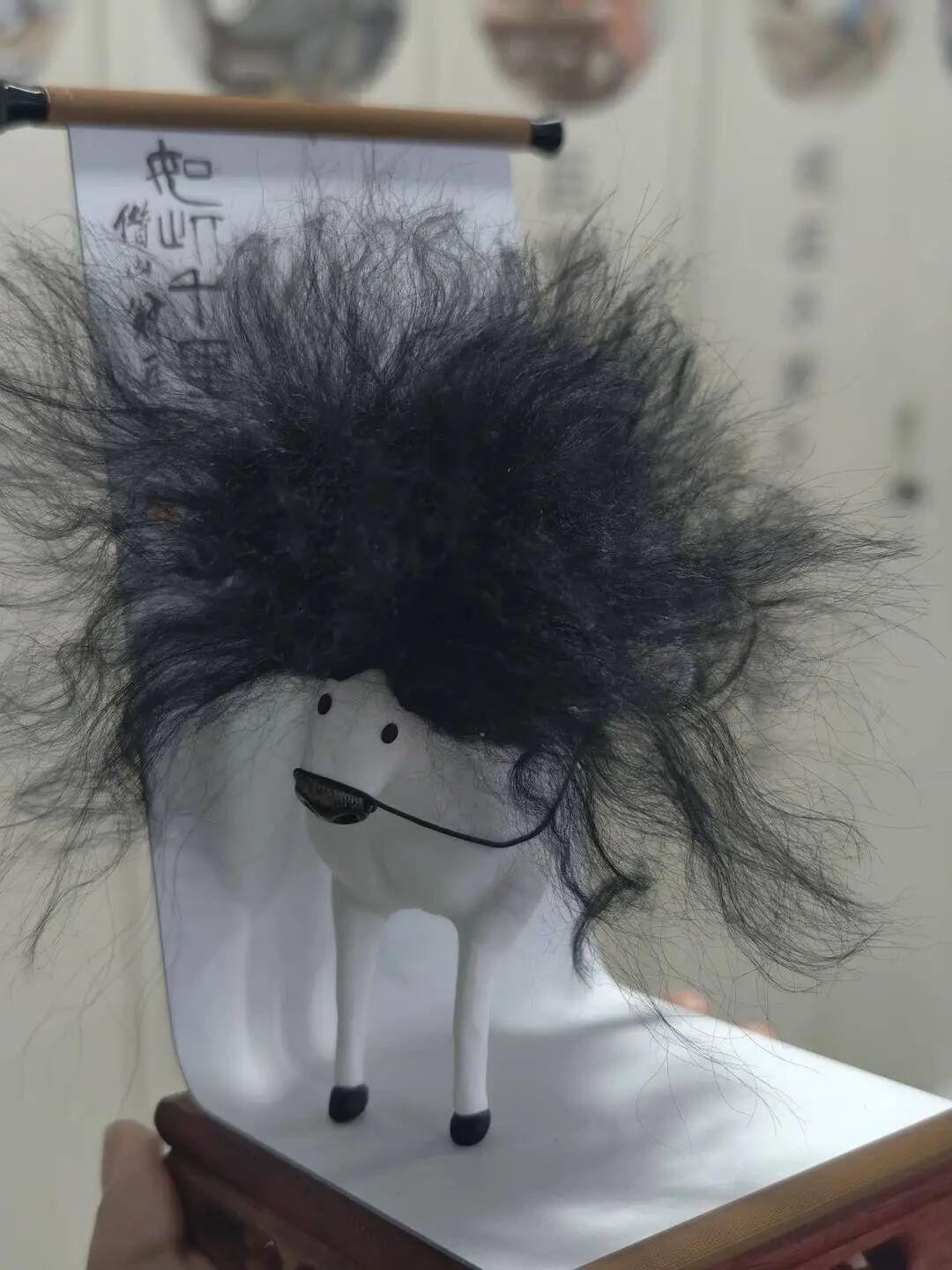“飘逸的长发用了羊毛材料,最初我们设计了一个扎辫子的造型,后来感觉太单一,就把它改成了一个基础的长发,让网友买回去自己DIY各种发型,这样更有参与感,而且我们相信网友的创意是无限的。”冯先生这样描述团队设计的初衷。