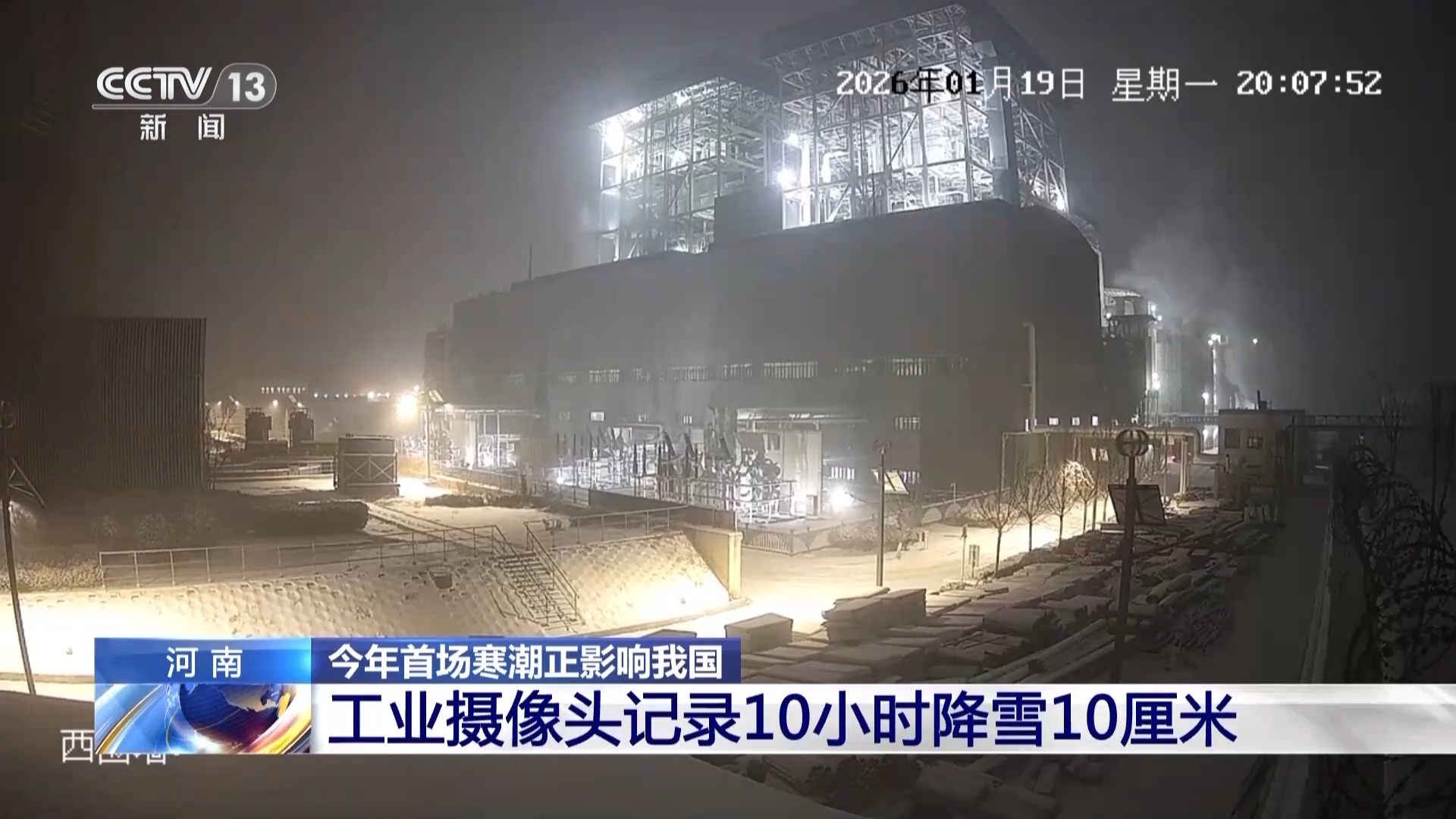 中央气象台预报显示,近日,河南迎来入冬以来最强低温雨雪冰冻天气,河南大部分地区相继出现雨雪天气,部分地区有暴雪,降温已超10℃。一起来看当地电厂工业监控画面记录下的雨雪情况。