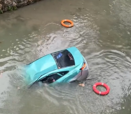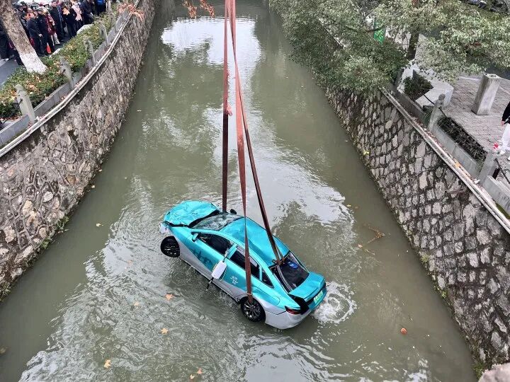 一声“扑通”,一辆出租车坠入河中……