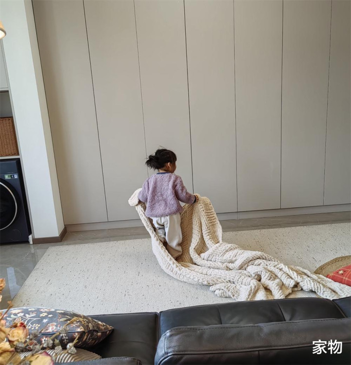 铺上地毯后,这小小的横厅更是酿成了孩子悠闲玩耍的空间,即即是一整天在上头打滚、拼积木或玩游戏齐没问题。