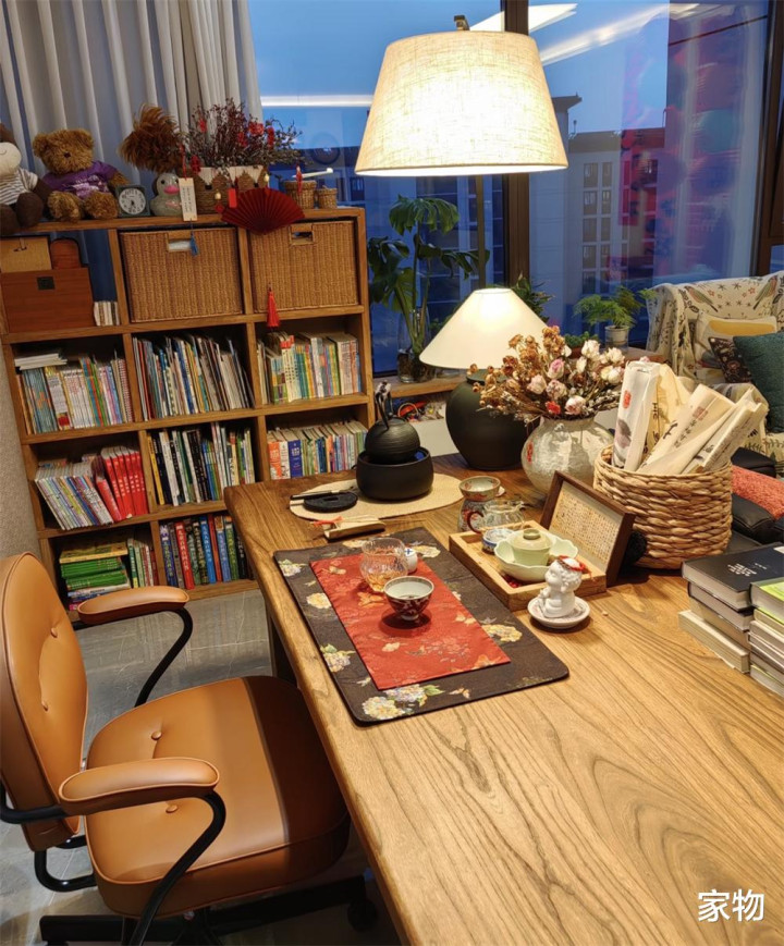虽说是小横厅,但其实也有一扇大号落地窗,坐在这张书桌上望向窗外,视线相等可以,坐在这张书桌前,也算是能将家里客厅和窗外风物一望广博,个东谈主嗅觉实用性和恬逸性齐相等可以。