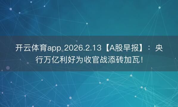 开云体育app 2026.2.13【A股早报】:央行万亿利好为收官战添砖加瓦!