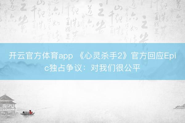 开云官方体育app 《心灵杀手2》官方回应Epic独占争议:对我们很公平