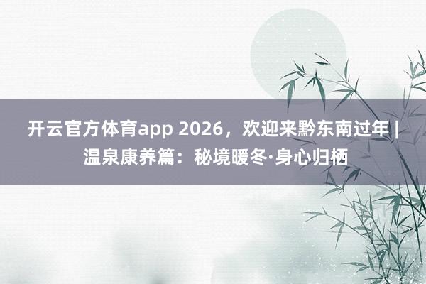 开云官方体育app 2026,欢迎来黔东南过年 | 温泉康养篇:秘境暖冬·身心归栖