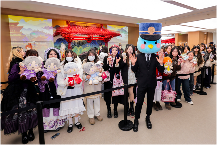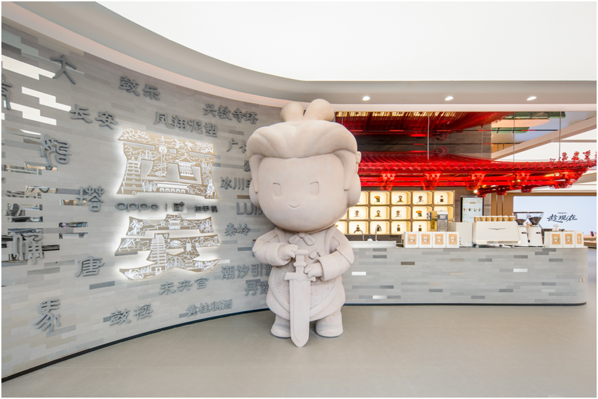 不仅是一家门店,西安旗舰店也致力于打造一座没有围墙的文化驿站和社交空间,除了呈现古代长安的历史文化,门店也将年轻人喜欢的二次元文化融入空间设计。
