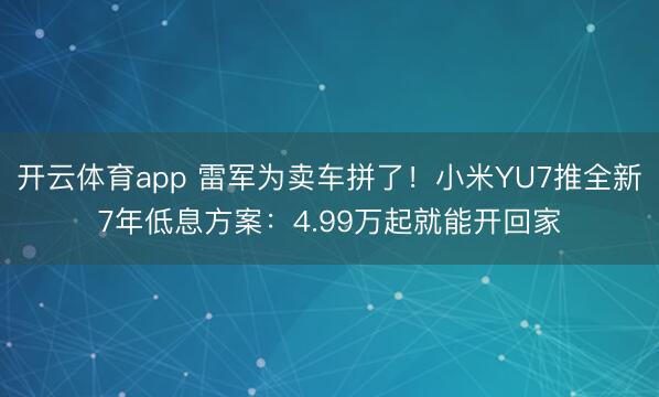 开云体育app 雷军为卖车拼了!小米YU7推全新7年低息方案:4.99万起就能开回家