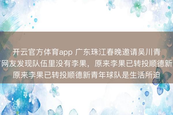 开云官方体育app 广东珠江春晚邀请吴川青年球队参加录制,有网友发现队伍里没有李果,原来李果已转投顺德新青年球队是生活所迫