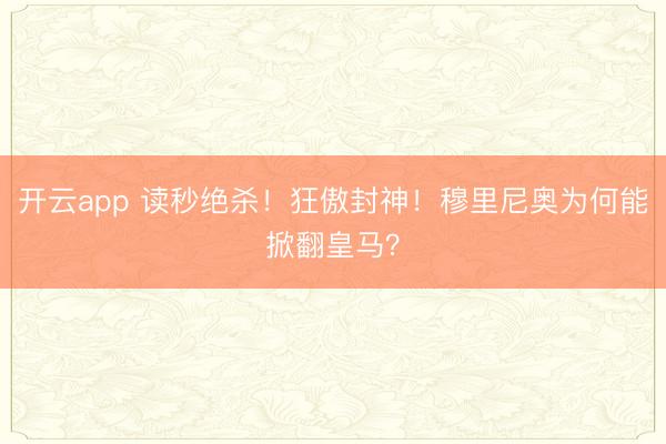 开云app 读秒绝杀!狂傲封神!穆里尼奥为何能掀翻皇马?
