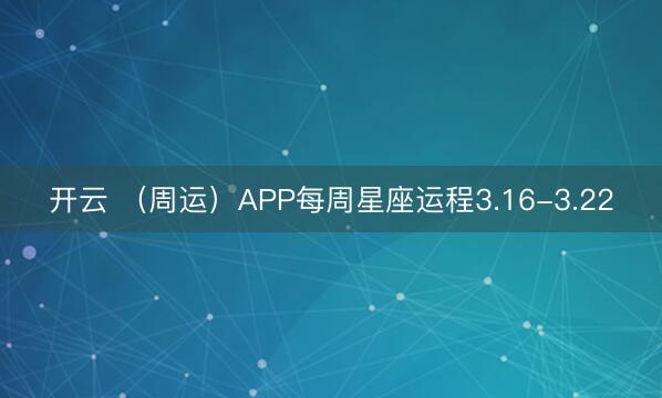 开云 (周运)APP每周星座运程3.16-3.22