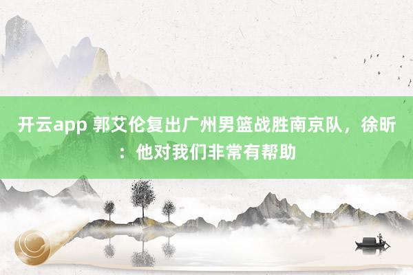 开云app 郭艾伦复出广州男篮战胜南京队,徐昕:他对我们非常有帮助