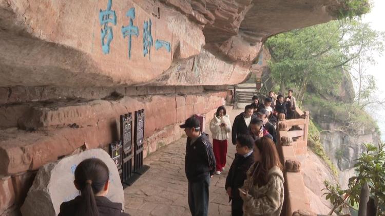 台湾同胞在重庆市合川区的钓鱼城景区参观。新华社发