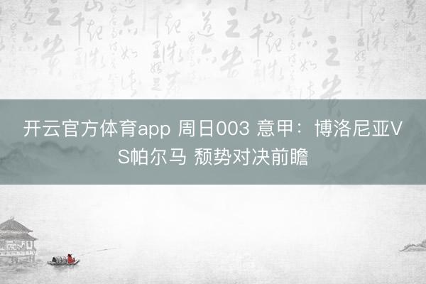 开云官方体育app 周日003 意甲:博洛尼亚VS帕尔马 颓势对决前瞻