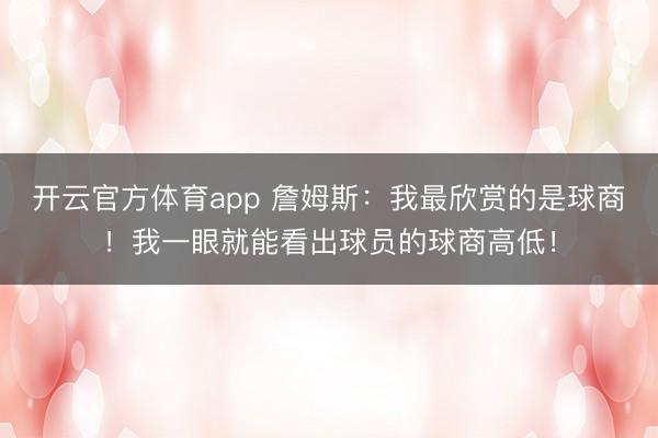 开云官方体育app 詹姆斯:我最欣赏的是球商!我一眼就能看出球员的球商高低!