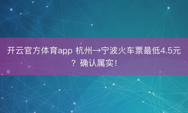 开云官方体育app 杭州→宁波火车票最低4.5元?确认属实!