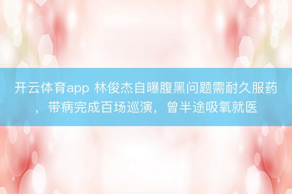 开云体育app 林俊杰自曝腹黑问题需耐久服药,带病完成百场巡演,曾半途吸氧就医