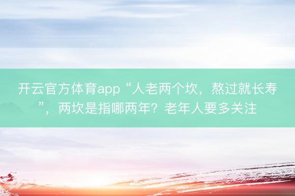 开云官方体育app “人老两个坎,熬过就长寿”,两坎是指哪两年?老年人要多关注