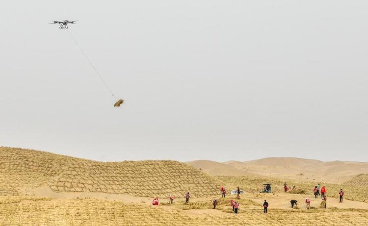 凤凰彩票app阿拉善(内蒙古),2026年2月28日2月28日,无东说念主机在内蒙古阿拉善盟境内的乌兰布和沙漠运送草料(无东说念主机像片)。2月28日,内蒙古阿拉善盟2026年“防沙治沙筑樊篱 黄河安澜惠民生”防沙治沙工程在乌兰布和沙漠旯旮的黄河“几字弯”西岸开工。阿拉善盟地处我国朔方防沙带要点解决区域,立异盛开以来,当地以工程固沙、生物治沙与林草生态系统抽象解决,搭建起多维度治沙体系,累计治沙超1亿亩,抓续为筑牢我国朔方生态安全樊篱孝敬力量。新华社记者 贝赫 摄" />