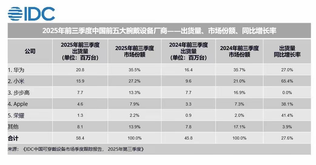 值得一提的是,从2015年首款纯圆设计打破行业格局,此后相继推出业界首款eSIM独立通话手表的华为WATCH 2、首款搭载 HarmonyOS 的全场景智能手表华为WATCH 3、首款支持一键微体检与高血糖风险评估的产品华为WATCH 4,首款鸿蒙AI智能手表华为WATCH 5等。截至2025年,华为穿戴全球累计出货突破2亿台,产品进入20多个国家市场,IDC数据最新数据显示2025年前三季度华为腕戴设备全球出货量达2860万台,位居全球及国内市场双第一,国内市场更实现"连续6年出货量第一"的佳绩。可以说十年的征程,华为WATCH系列实现了从追随到引领的跨越式发展。
