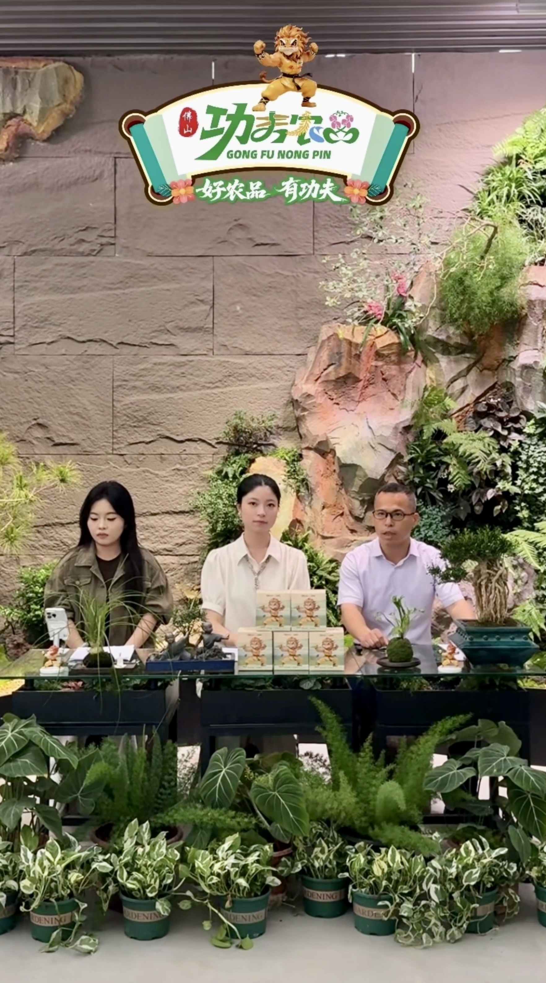 源态泡泡泥植物工厂稳重东谈方针伟海与南边农村报主播苗苗在直播间联手推介佛山优质绿植。