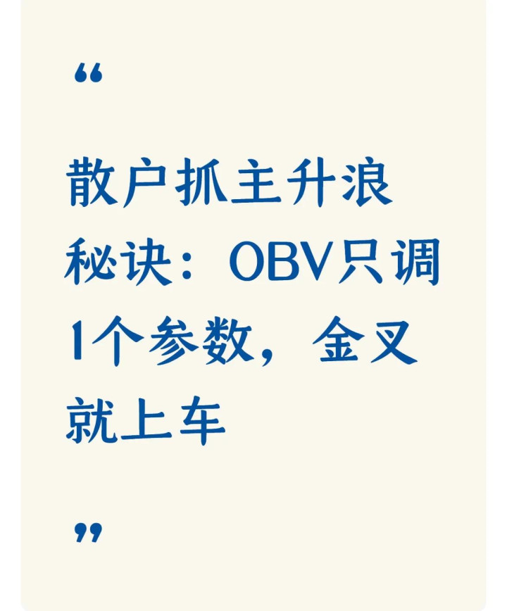 回到开首,好多东谈主被假信号坑怕了,以为宗旨没用。其实不是宗旨没用,是你没用到正确的用法。调对这1个参数,OBV就能从“坑东谈主宗旨”变成“收货利器”,帮你收拢一波又一波主升浪。