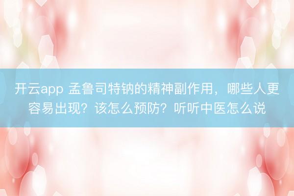 开云app 孟鲁司特钠的精神副作用,哪些人更容易出现?该怎么预防?听听中医怎么说