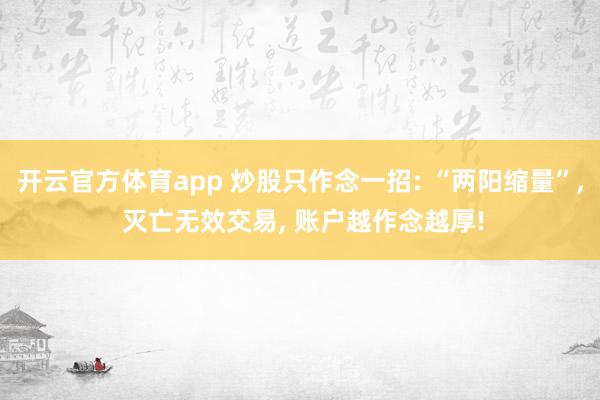 开云官方体育app 炒股只作念一招: “两阳缩量”, 灭亡无效交易, 账户越作念越厚!