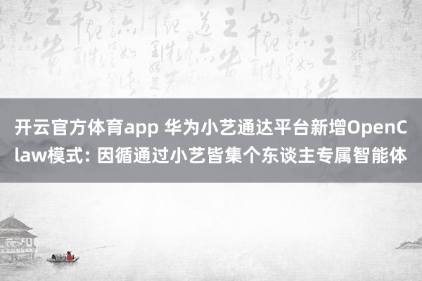 开云官方体育app 华为小艺通达平台新增OpenClaw模式: 因循通过小艺皆集个东谈主专属智能体