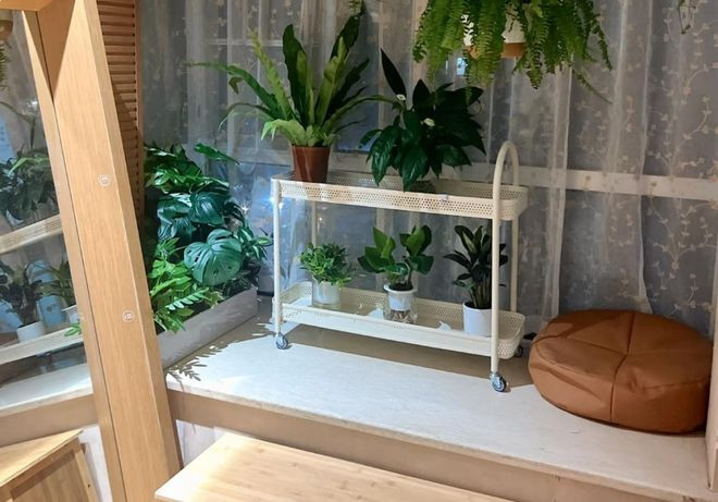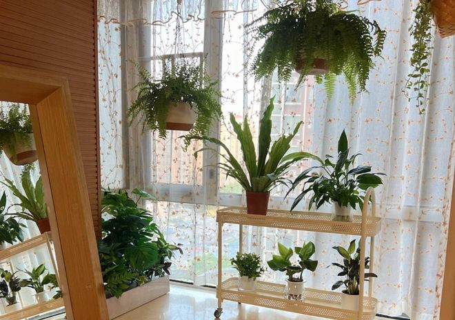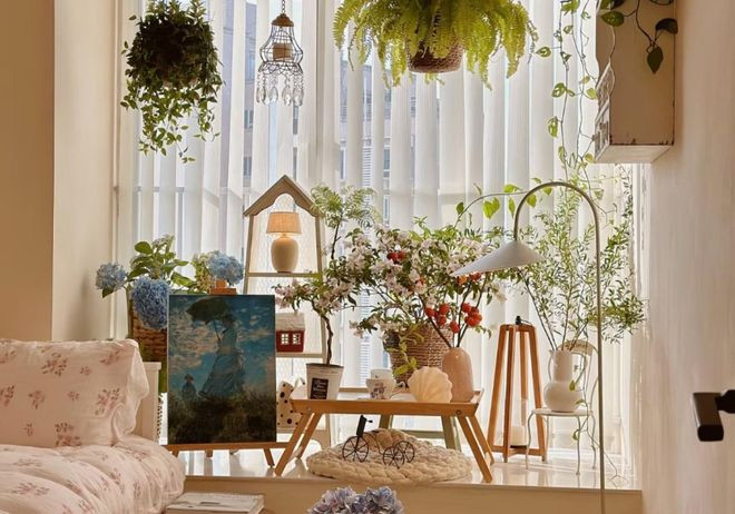 作念法其实卓著的浅陋,飘窗齐不需要作念任何的改变,浅陋的袒护以后,就不错在飘窗台面上派遣多层花架或者是置物架,将我方心爱的花卉绿植逐个摆放上去就不错了。