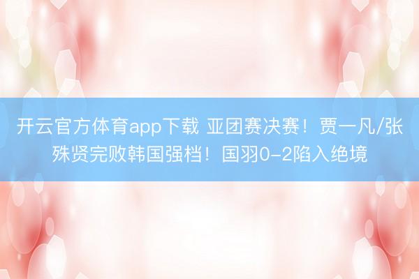 开云官方体育app下载 亚团赛决赛!贾一凡/张殊贤完败韩国强档!国羽0-2陷入绝境