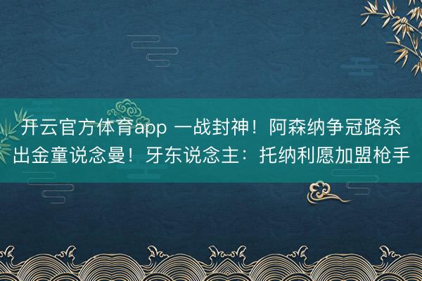开云官方体育app 一战封神!阿森纳争冠路杀出金童说念曼!牙东说念主:托纳利愿加盟枪手