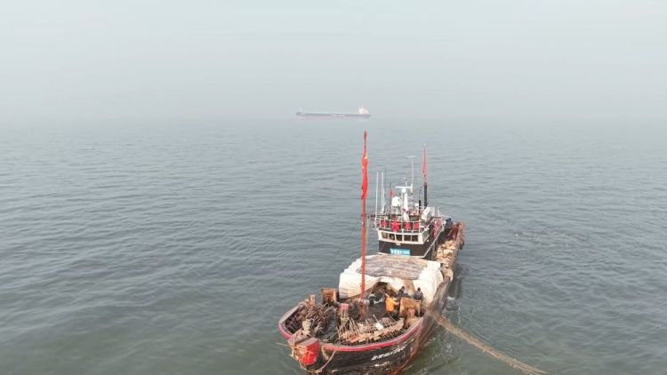 在无棣县埕口镇,渔民清晨便驾船出海。随着渔网收起,一只只活蹦乱跳的琵琶虾跃上甲板。渔民随即进行分拣、清洗和装筐。