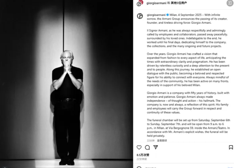 (Giorgio Armani)离世