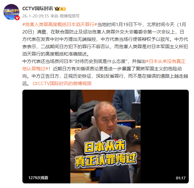 中方代表还当场质问日本“对待历史到底是什么态度”,并指出日本从来没有真正地认罪悔过!近期日方有关错误言论更是进一步暴露了复燃军国主义的危险动向。中方正告日方,正视历史铁证,深刻反省罪行,而不是在错误的道路上越走越远。
