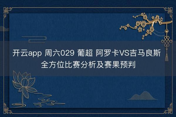 开云app 周六029 葡超 阿罗卡VS吉马良斯 全方位比赛分析及赛果预判