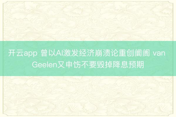开云app 曾以AI激发经济崩溃论重创阛阓 van Geelen又申饬不要毁掉降息预期