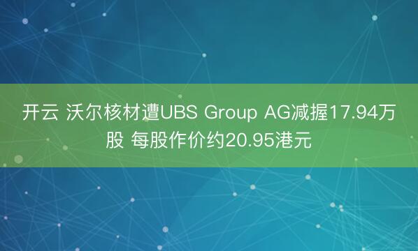 开云 沃尔核材遭UBS Group AG减握17.94万股 每股作价约20.95港元