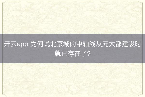 开云app 为何说北京城的中轴线从元大都建设时就已存在了?