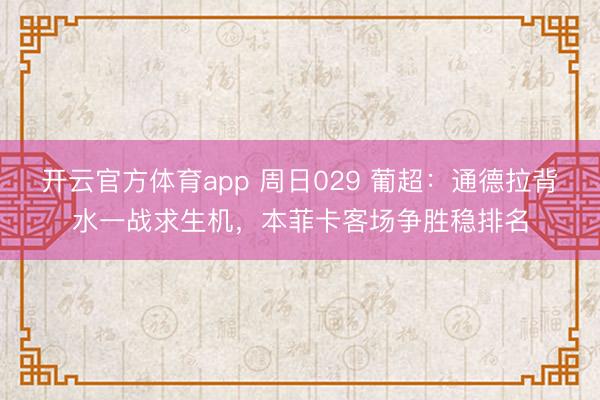 开云官方体育app 周日029 葡超:通德拉背水一战求生机,本菲卡客场争胜稳排名