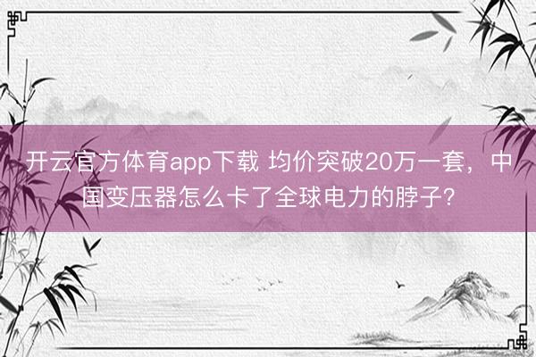 开云官方体育app下载 均价突破20万一套,中国变压器怎么卡了全球电力的脖子?