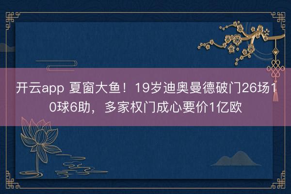 开云app 夏窗大鱼!19岁迪奥曼德破门26场10球6助,多家权门成心要价1亿欧