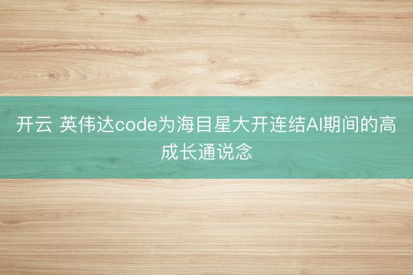 开云 英伟达code为海目星大开连结AI期间的高成长通说念