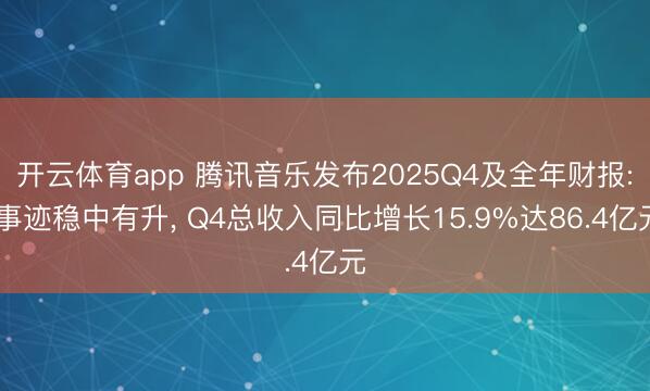 开云体育app 腾讯音乐发布2025Q4及全年财报: 事迹稳中有升, Q4总收入同比增长15.9%达86.4亿元